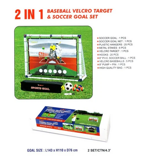 This 2-in-1 Baseball Velcro Target & Soccer Goal Set provides to fun for the whole family!