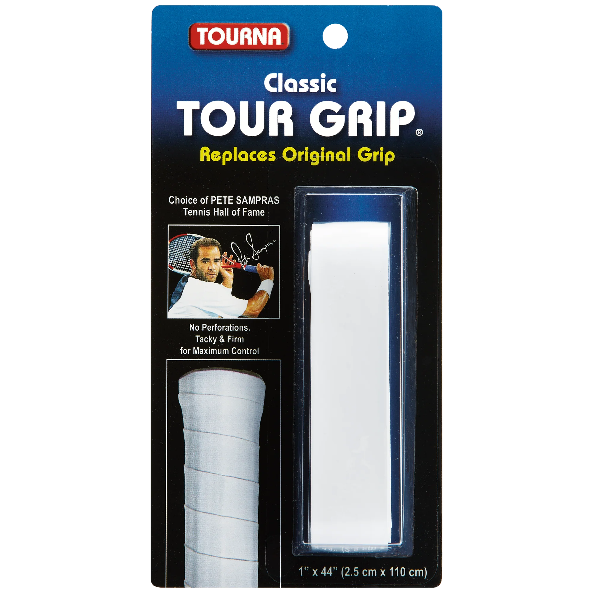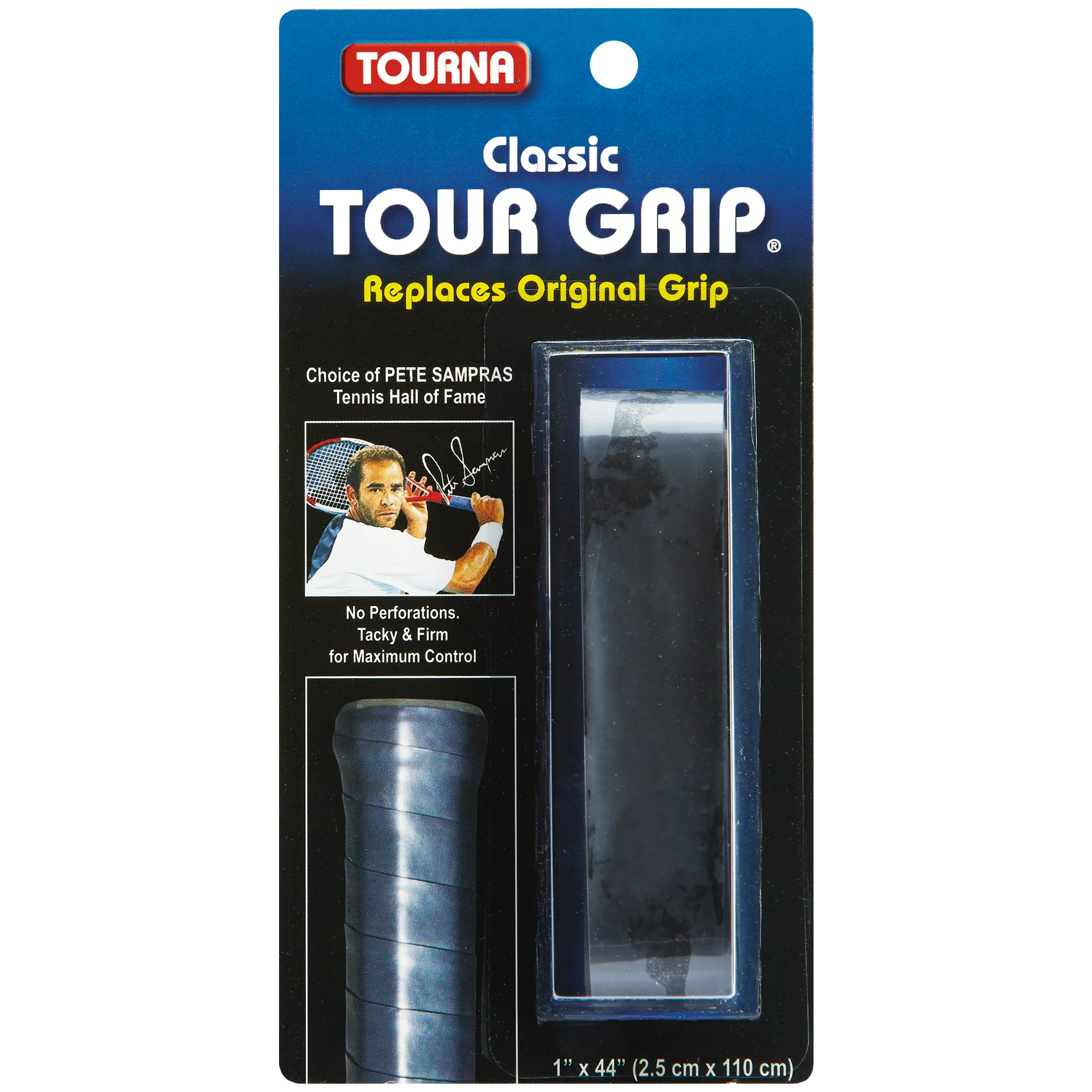 The Tourna Classic Tour Grip provides a comfortably firm feel. At 1.75mm thick, this grip is thin enough so that you can feel the underlying handle bevels, while also containing just enough cushioning to soften ball impact. The tacky surface will keep your hand from slipping.